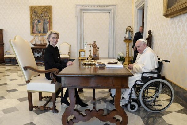 VATICANO – Nonostante il cordiale incontro con von der Leyen e i ripetuti inviti a cercare la pace fra Ucraina e Russia, Papa Francesco torna a sottolineare le colpe anche della Nato e dell’Occidente in questa situazione e pone l’accento su altre guerre meno pubblicizzate di quella che tutti i giorni evoca Zelensky. Un brutto colpo per il mediatico presidente ucraino, di cui si attendono le reazioni, come già avvenuto in passato.