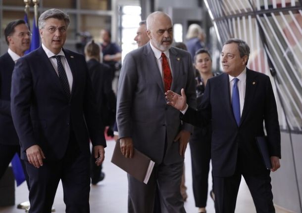 BRUXELLES – Al summit di capi di stato e di governo Ue il presidente del Consiglio, Mario Draghi, a quanto si apprende da più fonti europee, ha chiesto al Consiglio europeo di convocare un vertice straordinario sull’energia nelle prossime settimane. La proposta, si apprende ancora, sarebbe sostenuta da altri Paesi membri, tra i quali la Francia. Prima dell’inizio del Consiglio europeo il premier italiano ha avuto un incontro con il presidente francese Macron a Bruxelles presso gli uffici della delegazione italiana.
