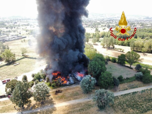 Il rogo si è sviluppato in via dell’Isolotto a Firenze: si tratta, spiegano i vigili del fuoco, di un vasto incendio di masserizie con una densa nuvola di fumo. Le fiamme si sono propagate anche alla sterpaglia lungo l’argine sinistro dell’Arno ma comunque il rogo è sotto controllo: devono però essere effettuate le operazioni di smassamento. I vigili sono presenti con due squadre e due autobotti.
