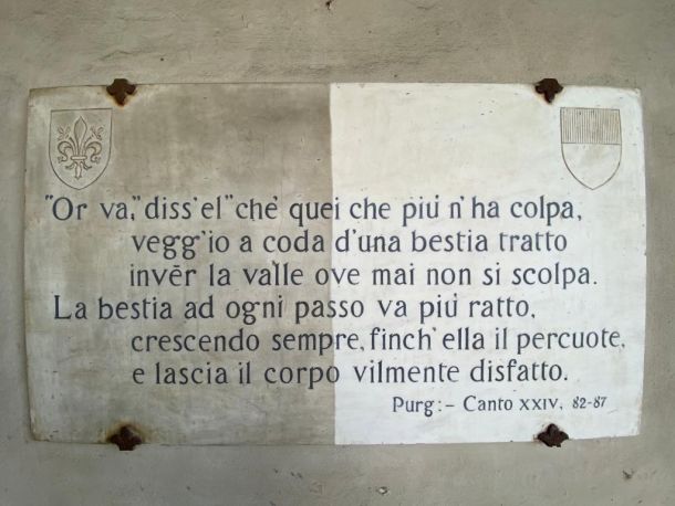 ”Le targhe dantesche che stiamo restaurando rappresentando la personalità e la storia della nostra città – ha detto l’assessore ai Lavori pubblici Titta Meucci -. Una testimonianza che non poteva essere lasciata al degrado e all’incuria e che per questo abbiamo voluto riportare all’antico splendore, anche grazie a Costa Crociere che ha reso possibile l’intervento con un finanziamento in regime di art bonus”.