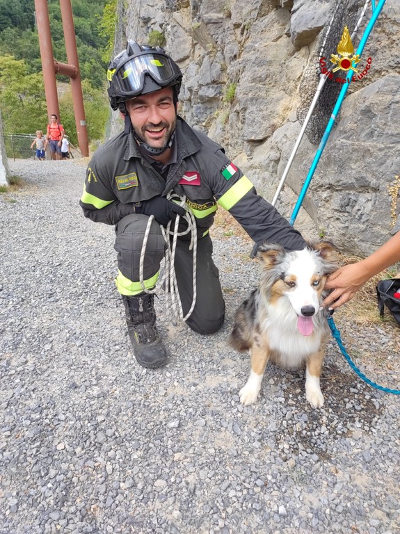 Lago di Vagli: cane precipita in un dirupo. Salvato dai vigili del fuoco con tecnica Saf