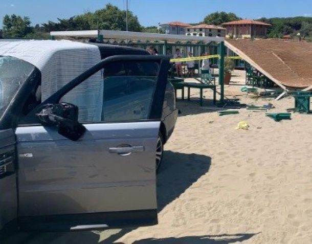 FORTE DEI MARMI (LU) – Tragedia sfiorata nel primo pomeriggio di ieri, 4 agosto, sulla spiaggia del famoso bagno Piero a Forte dei Marmi (Lucca): una Land Rover è in pratica piombata sotto una tenda, dopo aver distrutto una cabina, una bicicletta ed altri oggetti. Nessun ferito: fortunatamente sotto la tenda non c’era nessuno.