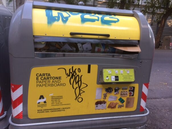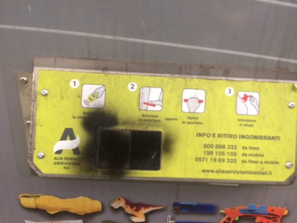 La stessa cosa è accaduta per i cassonetti ultima generazione di Alia, quelli che si aprono con le chiavette elettroniche. Evidentemente stufati dal fatto che i cassonetti predisposti risultano ampiamente insufficienti alcuni utenti – teppisti hanno ricoperto con vernice nera l’occhio elettronico che consente l’apertura.