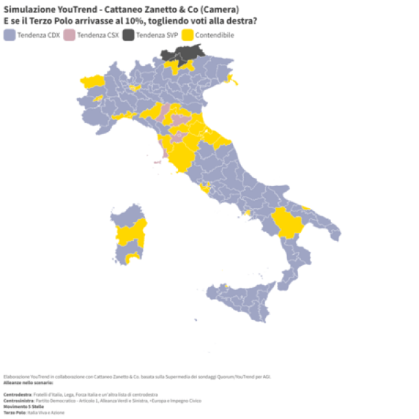 Elezioni, simulazione You Trend: il Terzo Polo non sarebbe determinante nell’uninominale