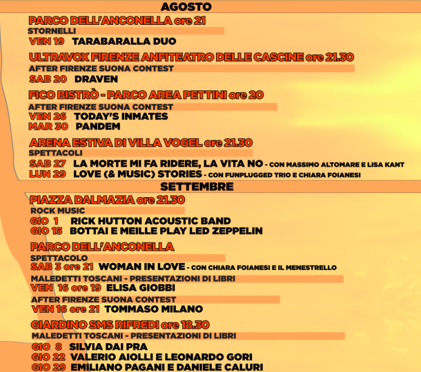 FIRENZE SUONA ESTATE 2022 – PROGRAMMA AGOSTO