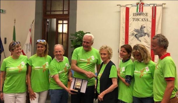 FIRENZE – Un Pegaso d’oro straordinario per lo sport alla manifestazione Corri la Vita. Lo ha consegnato stamani il presidente della Regione al presidente dell’omonima Associazione Onlus, Bona Frescobaldi. Tra le motivazioni che hanno portato all’assegnazione del prestigioso riconoscimento l’aver compiuto 20 anni di attività all’insegna della diffusione di valori come benessere, salute e solidarietà. Ma anche per essere una delle più importanti iniziative a livello nazionale che coniugano sport e solidarietà ed aver attivato, grazie agli oltre 7 milioni di euro raccolti, progetti di aiuto a più di 500 mila donne colpite da tumore al seno.