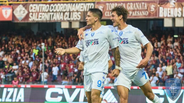 SALERNO – Cinque partite, quattro pareggi. L’Empoli impatta an che a Salerno. All’Arechi finisce 2-2 con le reti di Satriano e Lammers per gli azzurri e Mazzocchi e Dia per i campani. Candreva torna titolare sulla fascia destra, per il resto Nicola conferma l’undici che ha pareggiato a Bologna. In avanti Bonazzoli e Dia, panchina per l’ultimo arrivato Piatek. Zanetti fa subito esordire Pjaca alle spalle di Satriano e Lammers, in mediana c’e’ Henderson con Grassi e Haas.