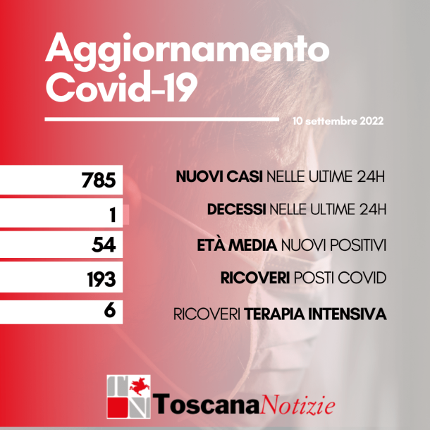 Covid Toscana: 1 morto (donna di 91 anni), oggi 10 settembre, e 785 nuovi casi