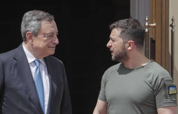 Volodymyr Zelensky (R) Mario Draghi (L) ANSA/SERGEY DOLZHENKO