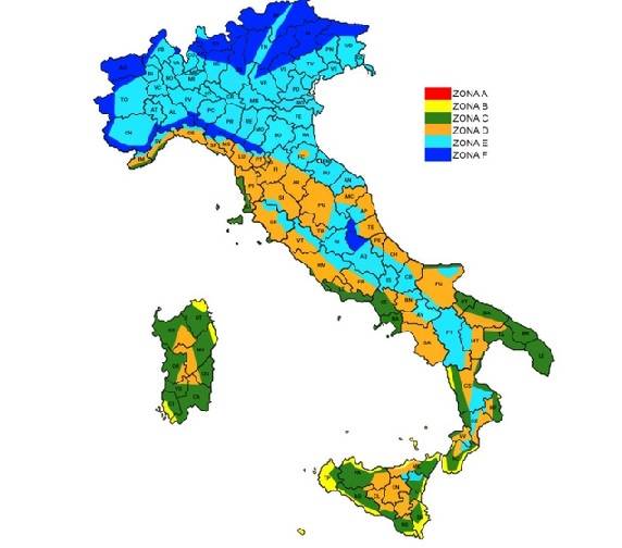 . Zona A (comprende solo alcune isole come Lampedusa e Linosa): riscaldamento acceso 5 ore al giorno dall’8 dicembre al 7 marzo