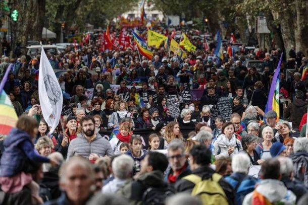 Moltissime le bandiere arcobaleno e gli striscioni. Davanti alla basilica di Santa Maria degli Angeli ne è stato esposto uno con la parola “Pace” declinata dieci lingue. Il corteo Europe for Peace raggiungerà piazza San Giovanni. “Siamo più di centomila” è la cifra comunicata dagli organizzatori della manifestazione capitolina. L’evento si è concluso sulle note di Bella Ciao. Secondo la questura i partecipanti sarebbero 30mila.