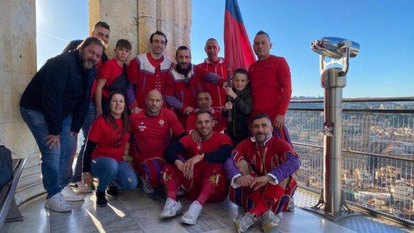 FIRENZE – Brando ha 9 anni, è tifoso dei Rossi di Santa Maria Novella: ha sempre voluto salire sulla Cupola del Duomo. Ma ha difficoltà a camminare e non avrebbe mai potuto percorrere i quasi 500 scalini. E così i calcianti rossi si sono offerti di portarlo in spalla fino alla cima per esaudire il suo desiderio.