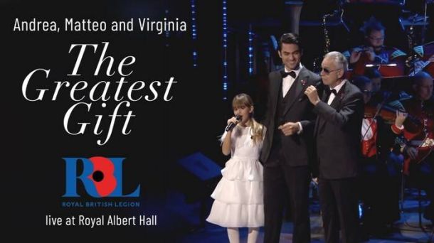 Andrea Bocelli, Matteo e Virginia, accolti da applausi, hanno cantato ‘The Greatest Gift’, brano inedito estratto dal loro nuovo album ‘A family Christmas’, davanti a tutti i reali inglesi: oltre a Carlo e Camilla, erano presenti William e Kate, principe e principessa di Galles, il conte e la contessa di Wessex, Anna e il marito vice ammiraglio Sir Tim Laurence, il duca e la duchessa di Gloucester, il duca di Kent e la principessa Alexandra, Lady Ogilvy. Tra gli altri artisti si sono esibiti l’attore e cantante di Hollywood Luke Evans, l’attrice vincitrice di un Emmy Award e star del West End Hannah Waddingham e la star del teatro musicale Marisha Wallace. Il tema centrale del Festival quest’anno è stato il 40/o anniversario della guerra delle Falkland e, mentre i petali cadevano nella Royal Albert Hall, l’evento ha ricordato con discorsi, canzoni e racconti, il servizio e il sacrificio dei militari durante la storia del regno