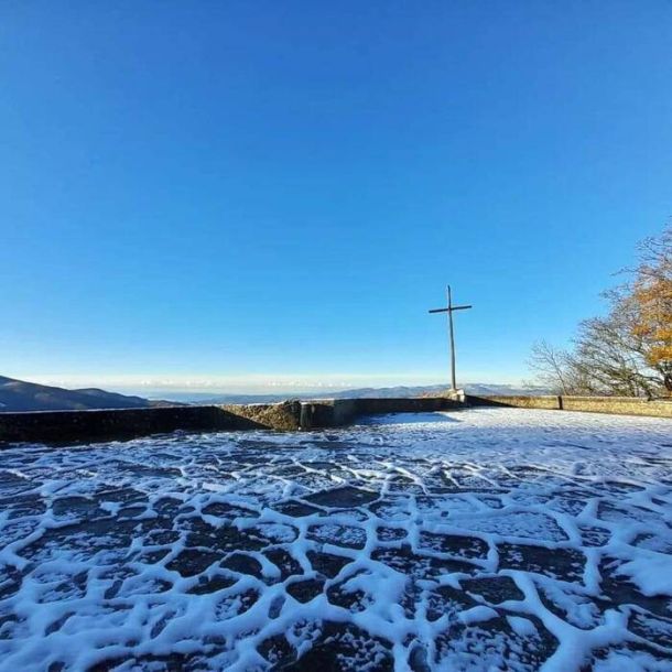 AREZZO- La neve ha imbiancato i rilievi della montagna aretina in particolare in Casentino e in Pratomagno. I fiocchi sono caduti in maniera copiosa, soprattutto nella zona del santuario della Verna.