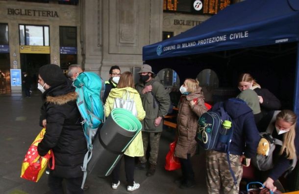 Accoglienza profughi Ucraini da parte della Protezione civile in Stazione Centrale, Milano, 16 marzo 2022, ANSA / PAOLO SALMOIRAGO