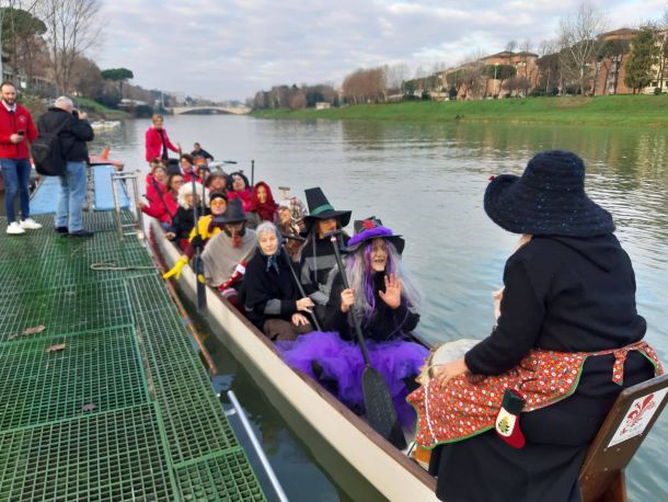 FIRENZE – La Befana è arrivata stamattina, 6 gennaio 2023, a Firenze vogando, a bordo di un Dragon Boat, per portare dolci e sorrisi ai bambini. L’iniziativa organizzata dalla Lega Italia per la Lotta contro i Tumori di Firenze e dai Canottieri Comunali Firenze si è svolta questa mattina in Lungarno Ferrucci, sede dei Canottieri: decine di bambini e le loro famiglie hanno accolto le Florence Dragon Ladies e le socie della società sportiva vestite da befane, che sono arrivate dall’Arno, a bordo di imbarcazioni, per distribuire le calze offerte da Coop ai bambini e panettoni e spumante agli adulti.
