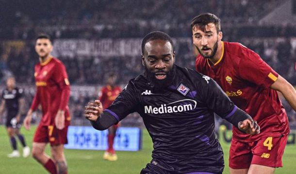TERRACCIANO – Un migliaio, o poco meno, i tifosi viola all’Olimpico. Rocco Commisso in tribuna. E’ schierata nella formazione annunciata, la Fiorentina: con Terracciano di uovo titolare e Jovic là davanti. Mourinho schiera a metà campo i giovani Bove e Zalewski. Pronti via: Roma in avanti e difesa viola in affanno. Al 4′ Dodò si prende il giallo per aver afferrato Zalewski per un braccio. Poi è Bove a stendere Biraghi, ma è solo punizione per i viola. Kumbulla blocca dur incursioni della Fiorentina. Ikonè prova ad andar via sulla destra, ma prima sbaglia clamorosamente l’appoggio, poi si fa bloccare ingenuamente da Zalewski. Fortunatamente, Amrabat dà ordine al centrocampo. Al 13′ scatto e dribblinga da sinistra di Zalewski, tiro e respinta di Terracciano. Riprende Mancini, ma la sua conclusione è alta.