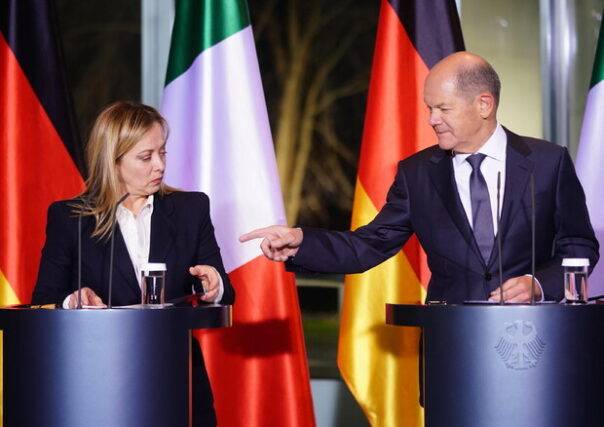 BERLINO – “Cara Giorgia la tua visita qui dimostra che Italia e Germania sono partner stretti nell’Europa e nell’Alleanza atlantica”. Così il cancelliere tedesco Olaf Scholz a Giorgia Meloni, oggi 3 febbraio 2023, durante la riunione bilaterale Germania-Italia. La Meloni, in mattinata, aveva incontrato il premier svedese Ulf Kristersson. Attenzione sulla rotta Mediterranea e difesa dei confini esterni per quanto riguarda l’immigrazione; flessibilità e fondo sovrano in merito ai temi economici. Sono i punti dell’incontro a Stoccolma con il premier svedese Kristersson in vista del primo Consiglio Europeo della presidenza svedese. La premier ha quindi lasciato la Svezia per raggiungere Berlino, dove ha incontrato il Cancelliere tedesco Olaf Scholz.