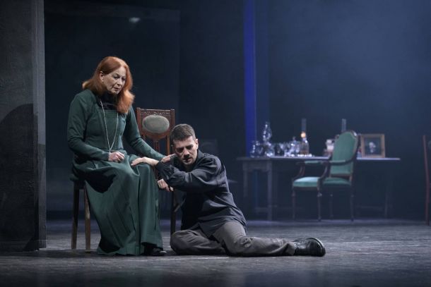 Andrea Jonasson in Spettri di Henrik Ibsen versione italiana e adattamento Fausto Paravidino con Gianluca Merolli, Fabio Sartor, Giancarlo Previati, Eleonora Panizzo scene e costumi Adomas Jacovskis musica Faustas Latènas, Giedrius Puskunigis, Jean Sibelius, Georges Bizet disegno luci Fiammetta Baldiserri regia Rimas Tuminas produzione TSV