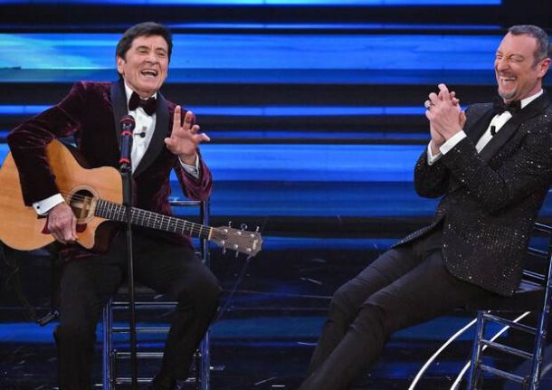 Dopo un excursus sul filo dell’ironia sulle sue canzoni degli inizi, “piuttosto brutte”, dai musicarelli alla Befana Trullallà, Gianni Morandi trascina l’Ariston sulle note di ‘Bella Belinda’.