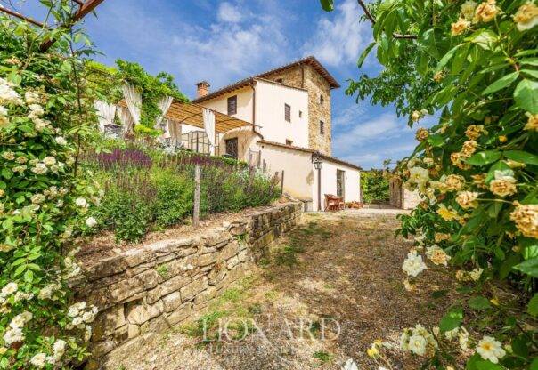 Qui alcuni ritengono che Dante e Beatrice si siano incontrati per la prima volta, dove le loro famiglie venivano a villeggiare. Ma sono supposizioni. L’immobile all’esterno è incorniciato da un ampio terreno che si estende per 1,2 ettari con annesso parco in cui sorge un giardino d’inverno e un ampio roseto, un oliveto e anche un bosco. La superficie interna è di 650 metroi quadrati, di cui la villa padronale per di 420 mq e, in posizione adiacente, un annesso di 220 mq su due livelli, originariamente adibito a granaio oggi ristrutturato, con due salotti, una cucina, tre camere e due bagni, oltre due terrazze.