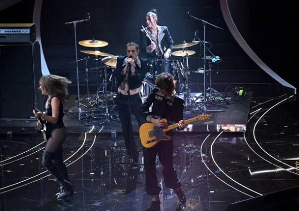 Arrivano i Maneskin e l’Ariston si scatena. Damiano & CO proprio da questo palco nel 2021 iniziarono la cavalcata che li ha portati a conquistare il mondo. La band ha regalato al pubblico un medley con alcuni dei loro successi: I wanna be your slave, Zitti e buoni (il brano con cui primeggiarono prima a Sanremo poi all’Eurovision Song Contest), The loneliest e l’ultimo singolo Gossip sulle cui note è salita sul palco anche la leggenda del rock Tom Morello. Prima di salutare, i Maneskin hanno ricevuto il Premio Città di Sanremo.