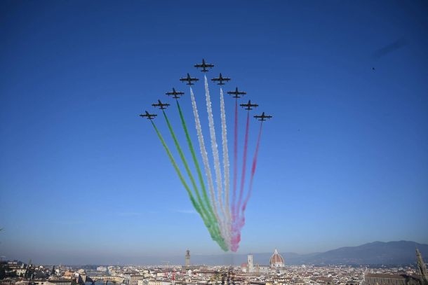 Zeffirelli e i suoi cent’anni: le frecce tricolori su Firenze. Intitolato al Maestro il “belvedere” sotto Piazzale Michelangelo (Foto e video)