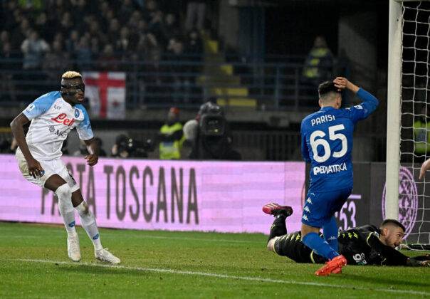 EMPOLI – Si è dovuto arrendere, l’Empoli, al super Napoli di Spalletti. Che al Castellani ha inanellato l’ottava vittoria consecutiva in campionato. E’ finita 0-2 per l’autogol di Ismajli e per il 19mo centro nel torneo di uno scatenato Viktor Osimhen, sempre più capocannoniere e all’ottava gara di fila a segno.