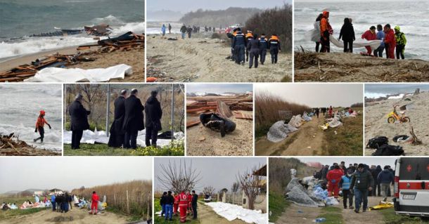 BARCONE – La tragedia è avvenuta in un tratto di costa isolata, con poche case, tutte distanti e disabitate in inverno, e su una spiaggia in cui sabbia e arbusti si contendono lo spazio. Il barcone, partito quattro giorni fa da Izmir, in Turchia, con un carico di cittadini iracheni, iraniani, afghani e siriani, era stato individuato nella serata di ieri da un aereo del servizio Frontex. Dal porto di Crotone hanno preso il mare due unità della Guardia di finanza, ma le pessime condizioni – con mare forza 3-4 – hanno obbligato gli equipaggi a rientrare.