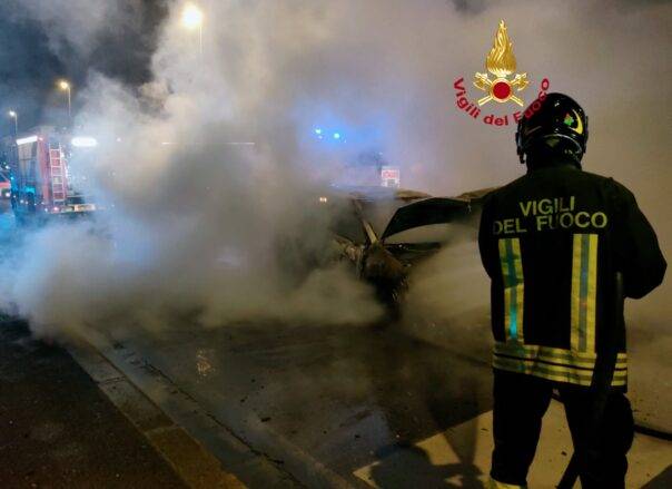 Momenti di panico, risveglio concitato per gli abitanti della zona. I Vigili del fuoco hanno effettuato lo spegnimento della vettura, non ci sono persone rimaste coinvolte nell’incendio. Sul posto personale sanitario.