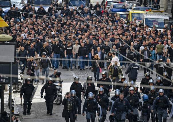 Gli scontri sono iniziati quando i tifosi tedeschi, che da stamattina, 15 marzo 2023, in corteo avevano raggiunto piazza del Gesù dal lungomare, dovevano salire sui bus che li avrebbero riportati nell’albergo dove alloggiavano. A quel punto sono comparsi diverse decine di facinorosi con il volto coperto che hanno ingaggiato uno scontro mentre la Polizia, in assetto antisommossa, era impegnata a dividere le fazioni e a disperdere gli ultras.