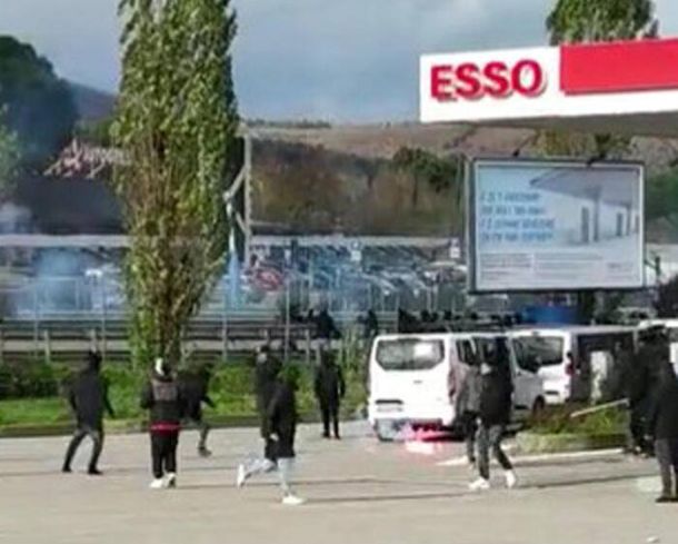 Per diversi minuti persone di opposte fazioni si sono fronteggiate su più aree del tratto autostradale adiacente all’area di servizio, impegnando direttamente la corsia di transito in direzione Nord, di fatto determinando l’interruzione del traffico veicolare che protratto nel tempo ha causato una coda di veicoli fermi lunga circa 9 chilometri. Il continuo lancio di oggetti reciproco, l’accensione di torce e l’esplosione di petardi interessò anche la carreggiata opposta, in direzione sud, creando serie condizioni di pericolo per i mezzi in transito.