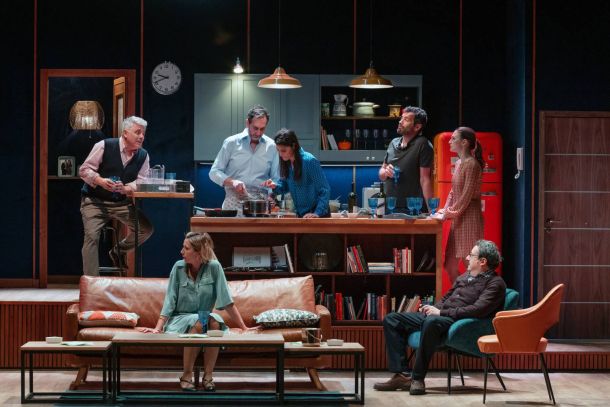 Dino Abbrescia, Alice Bertini, Marco Bonini, Paolo Calabresi, Massimo De Lorenzo, Anna Ferzetti, Valeria Solarino in Perfetti sconosciuti, uno spettacolo di Paolo Genovese, scene Luigi Ferrigno, costumi Grazia Materia, luci Fabrizio Lucci, produzione Nuovo Teatro diretta da Marco Balsamo, Teatro della Toscana e Lotus Production.