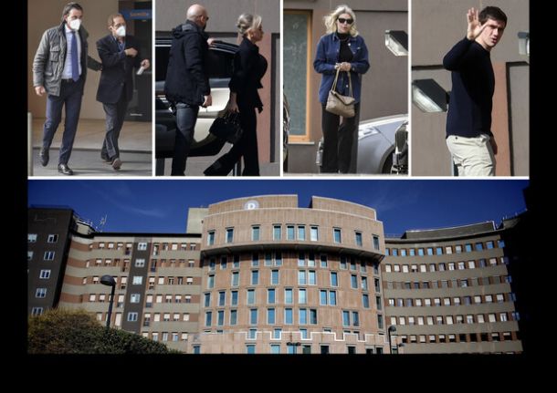 Pollice in su di Luigi Berlusconi da dietro i finestrini della sua auto, lasciando il San Raffaele dove è ricoverato il padre Silvio. Anche la prima figlia Marina ha appena lasciato la struttura mentre la sorella Barbara è ancora dentro con l’ex premier.