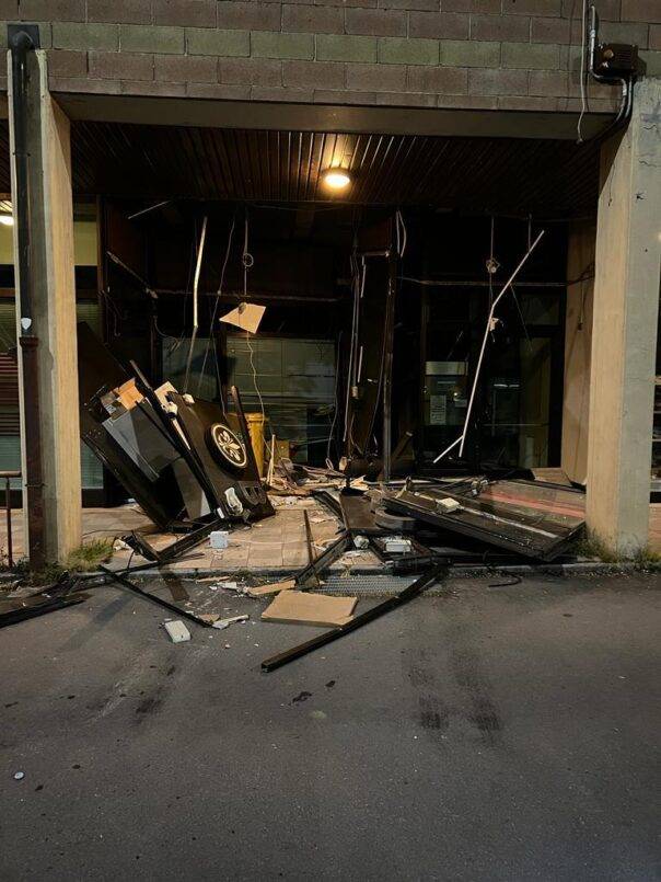 Secondo quanto ricostruito dai carabinieri, che conducono le indagini, i banditi, utilizzando delle corde di carico agganciate ad un mezzo pesante, hanno asportato il bancomat. Nell’assalto sono stati causati danni anche alla struttura. Nel corso della mattinata i militari hanno rinvenuto anche un altro veicolo, utilizzato per l’azione, e il bancomat, che era stato forzato.