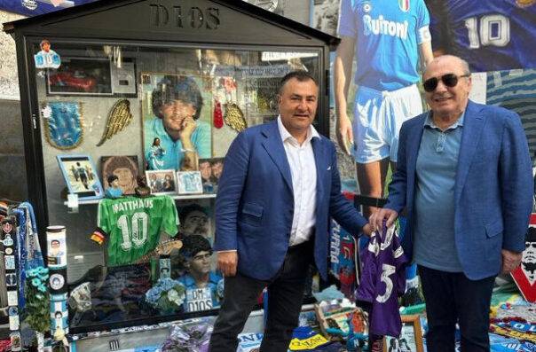 Il profilo Twitter del club viola ha pubblicato due foto in cui si vedono il presidente ed il direttore gigliato, Rocco Commisso e Joe Barone, portare un mazzo di fiori proprio sotto una sorta di mausoleo pagano dedicato a Maradona in pieno centro a Napoli.