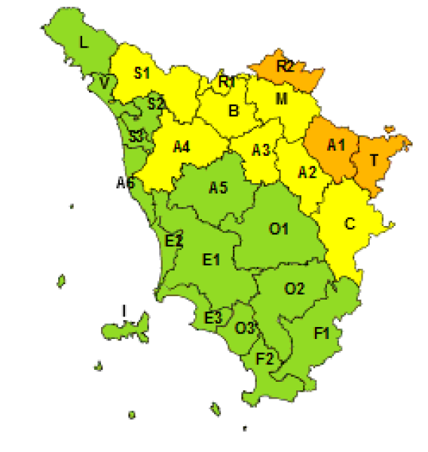 Tra il pomeriggio di oggi e la mattina mercoledì 17, piogge diffuse e locali temporali sui settori appenninici, in particolare su alto Mugello, alta Val Tiberina e alto Casentino. Sul resto della regione precipitazioni sparse. Possibili rovesci o locali temporali. Dal pomeriggio di domani tendenza ad attenuazione dei fenomeni. Domani possibilità di locali temporali sui settori sud occidentali con colpi di vento e grandinate occasionali. Per le giornate di oggi e domani, raffiche di Tramontana-Grecale molto forti interesseranno il crinale appenninico tosco-emiliano e forti nelle zone centro settentrionali.