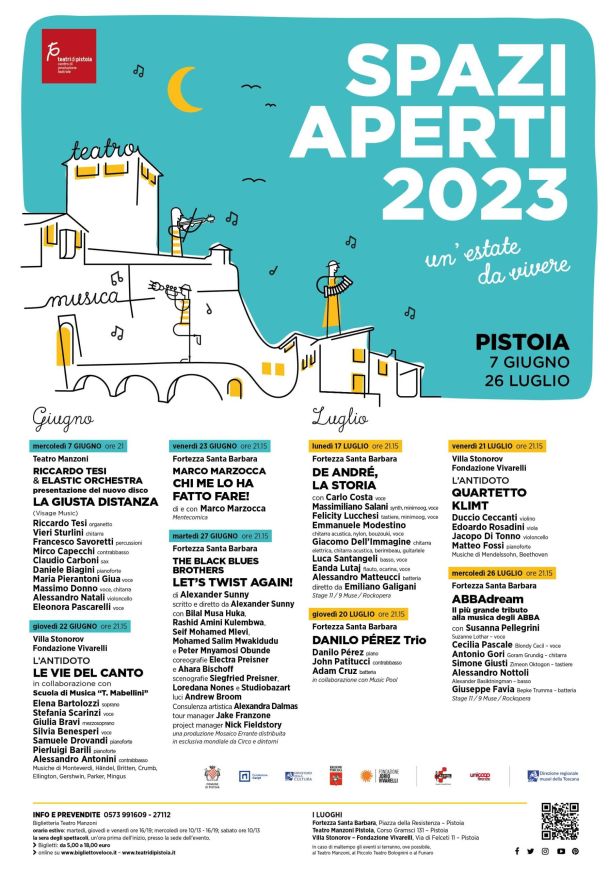 FIRENZE – Si apre oggi, 7 giugno 2023, a Pistoia Spazi Aperti 2023, il cartellone multidisciplinare dei Teatri di Pistoia che animerà fino al 26 luglio vari luoghi della città. Protagonista assoluta la musica, nella ricchezza dei suoi più diversi linguaggi (dalla world music alla canzone d’autore, dal swing al jazz, dalla musica d’arte al pop) con un’incursione nella comicità; l’obiettivo è incontrare un pubblico eterogeneo, composto anche dai più giovani, confermando alla cultura e allo spettacolo dal vivo, in particolare, il ruolo di prezioso strumento di coesione sociale, apertura e crescita collettiva. In totale, 8 serate tra il Teatro Manzoni (per l’apertura del 7 giugno), la cinquecentesca Fortezza medicea di Santa Barbara (il palcoscenico all’aperto di Pistoia, che ospiterà 5 appuntamenti) e il parco della Villa Stonorov, sede della Fondazione Jorio Vivarelli, in cui sono conservate molte opere in bronzo di grandi dimensioni realizzate dallo scultore e nel quale si terranno i due concerti della XIII edizione della rassegna “L’Antidoto”, a cura di Daniele Giorgi. Gli appuntamenti previsti presso la Fortezza medicea di Santa Barbara si completeranno anche quest’anno con il programma proposto dalla Fondazione Radioterapia Oncologica Onlus.