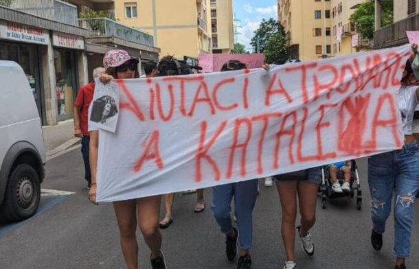 Il corteo organizzato stamattina, 12 giugno 2023, con uno striscione con scritto ‘Aiutateci a trovare Kataleya’ e intonando slogan come ‘Vogliamo giustizia’, “Vogliano risposte” e ‘Torna a casa Kataleya’ (ANSA/LEONARDO ROSELLI)