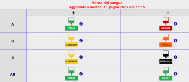 La situazione attuale della Toscana, con gravi carenze nei gruppi con Rh negativo