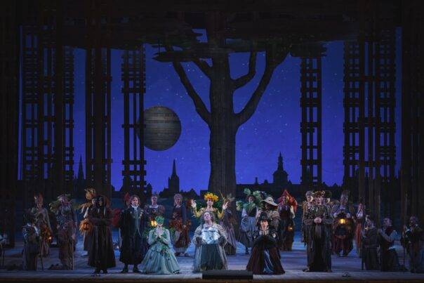 FIRENZE – Ha debuttato al Teatro del Maggio Musicale Fiorentino, ultimo titolo lirico dell’85° Festival, la ripresa (ma con cast quasi integralmente diverso) del bell’allestimento del «Falstaff» di Giuseppe Verdi che si era visto nel 2021; prima della prima, il palco è stato occupato in un breve flash mob dai membri del Coro e dell’Orchestra del Maggio musicale fiorentino, che hanno rivolto un appello alle istituzioni perché risolvano la crisi economica dell’ente lirico, sempre più a rischio via via che i giorni passano senza che nessuno intervenga a coprire il “buco” lasciato nei bilanci 2022 e 2023 dall’ex-sovrintendente Pereira. All’apertura del sipario i lavoratori sono rimasti immobili sul palco, mentre una voce registrata diceva: “Signore e signori, buonasera! Tra poco assisterete al Falstaff, l’ultimo grande capolavoro di Giuseppe Verdi. “Tutto nel mondo è burla!”, dicono i protagonisti al termine dell’opera. Ma il teatro e la vita non sono la stessa cosa”. E ancora: “Il tempo affinché il teatro del Maggio musicale fiorentino e i suoi dipendenti non vengano stritolati dalla grave situazione economica in cui versa la Fondazione è breve. Nei prossimi giorni occorre che, congiuntamente al commissario, le istituzioni, il ministero della cultura, la Regione Toscana, il Comune di Firenze, siedano a uno stesso tavolo e definiscano formalmente il piano economico e il progetto che faccia sì che il nostro teatro non chiuda, si evitino gravi danni a tutti noi dipendenti e a voi pubblico che siete la ragione per la quale questo sipario viene alzato. Se tutto ciò non avverrà, questo è quello che ci aspetta: il silenzio”. Una spettatrice ha urlato “Forza Maggio!” e l’intera sala ha calorosamente applaudito. Così, con un pubblico già partecipe e commosso, è iniziato lo spettacolo: da vedere, perché molto gradevole, e non solo perché riempiendo il teatro si sostengono le masse artistiche di prim’ordine che ha il Maggio. Il protagonista Michael Volle affronta il ruolo da attore consumato; nel resto del cast si constata un accurato lavoro preparatorio che livella le disuguaglianze e assicura la riuscita dello spettacolo, che si avvale delle piacevoli scene di Julian Crouch, delle suggestive luci di Alex Brok (riprese da Valerio Tiberi) e Josh Higgason, e dei bei costumi (magnifici quelli del coro nella scena della finta tregenda alla quercia di Herne, coi coristi trasformati in verzura un po’ in stile Arcimboldo) di Kevin Pollard; ripresa con cura puntigliosa da Stefania Grazioli la regia di Sven-Eric Bechtolf, che ha reso bene, oltre al terzo atto, anche la scena del primo tranello a Falstaff, alla fine del secondo. Molto buona anche la resa dell’Orchestra diretta da Daniele Gatti e ottima, come sempre in questo titolo, quella del Coro del Maggio.