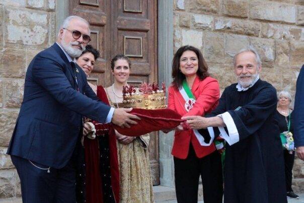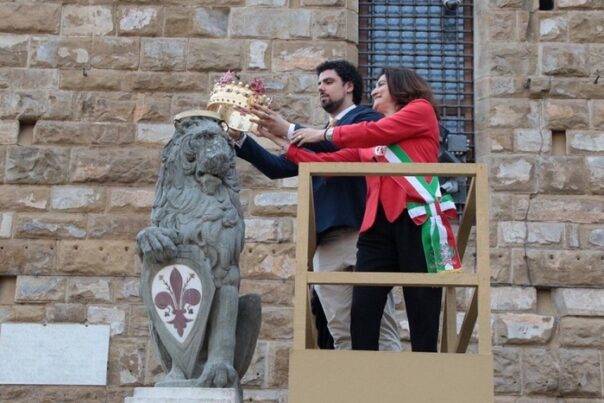 FIRENZE – La tradizionale cerimonia d’incoronazione, realizzata grazie alla sinergia di Comune di Firenze, Società di San Giovanni Battista, Corteo Storico della Repubblica Fiorentina e del Calcio Storico Fiorentino e Bottega Orafa Paolo Penko, si è tenuta stamani, 18 giugno 2023, alla presenza della vicesindaca di Firenze, Alessia Bettini, con l’apposizione del prezioso ornamento sulla testa della statua del Marzocco in piazza della Signoria.