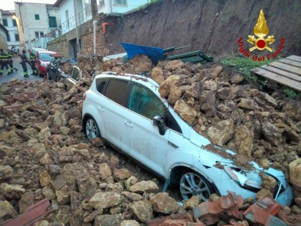 Livorno: crolla muro nella notte a Rosignano. Travolte auto in sosta