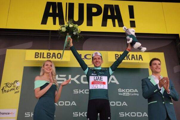 In discesa invece i due gemelli Yates hanno guadagnato il margine ideale per arrivare da soli sul traguardo del capoluogo basco. Vittoria numero 40 in stagione per la UAE Team Emirates che ora potra’ gestire la maglia di leader. Subito problemi per Richard Carapaz (EF Education-EasyPost) e Enric Mas (Movistar Team), coinvolti in una caduta a 20 chilometri del traguardo. Domani la seconda tappa nei Paesi Baschi della Grande Boucle, la Vitoria Gasteiz-San Sebastian di 208,9 chilometri.