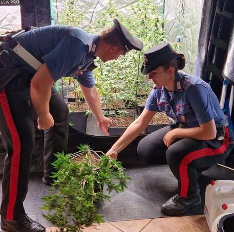 La successiva perquisizione domiciliare permetteva di trovare ulteriori 1,6 kg della stessa sostanza, 180 grammi di hashish, una dose di cocaina e tre serre complete di sistemi di irrigazione e illuminazione con 62 piante di cui 16 in essiccazione e 24 in fase di fioritura, semi di canapa, vario materiale per il confezionamento e la somma di 1660 euro.