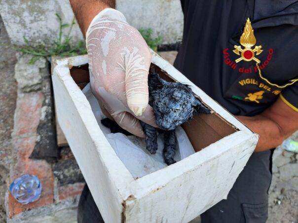 Rogo di via Fanfani: gattino incastrato tra i rifiuti bruciati. Salvato dai vigili del fuoco