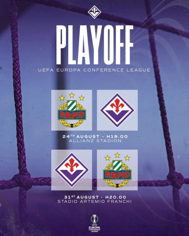ROMA – La Fiorentina dovrà misurarsi col Rapid Vienna nei play-off di Conference League. Dopo lo 0-0 della gara d’andata, a Vienna, la formazione austriaca si è imposta nel ritorno del terzo turno preliminare sul campo del Debrecen per 5-0 al “Nagyerdei Stadion”.