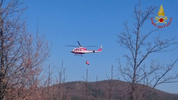 A terra, in un duro lavoro di spegnimento con attrezzi manuali, operano 30 squadre di volontariato antincendio boschivo, oltreché operai forestali e Vigili del fuoco.