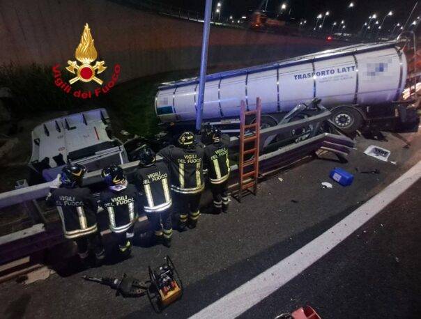 SCANDICCI (FIRENZE) – Incidente stradale la notte scorsa, 31 agosto 2023, sull’autostrada A1. I Vigili del fuoco del comando di Firenze sono intervenuti poco dopo le 3 nel tratto autostradale A1 al km 291 direzione nord, nei pressi del parcheggio Villa Costanza a Scandicci, per un incidente stradale, che ha coinvolto un tir per il trasporto di latte, uscito dalla sede stradale.