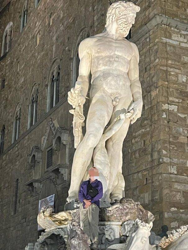 Firenze: turista tedesco sale sul Nettuno (il “Biancone”) in piazza Signoria. Danni per 5mila euro